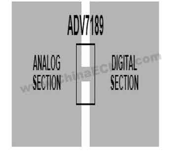 如果可能最好限制每个数字输出器件的电容值在以下,这可以通过减少迹线长度或将输出连到唯一的器件上很容易的实现。输出端加载过多的电容,会增加ADV7189B内电流的瞬变,在电源上产生更多的数字噪声。